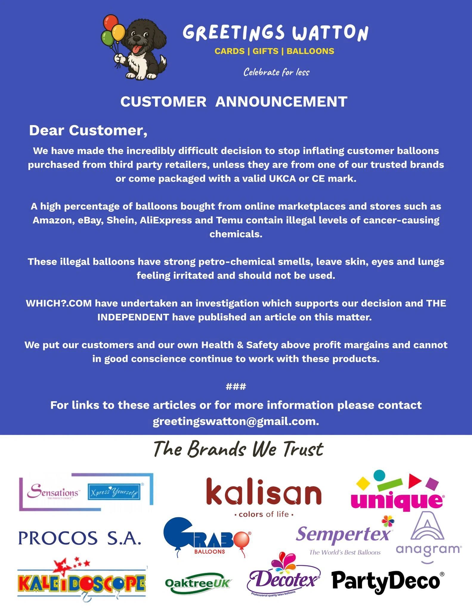 *Discount on retail purchases only, does not apply to balloon arrangements or displays. Limit of £10 single item rrp before discount applied.